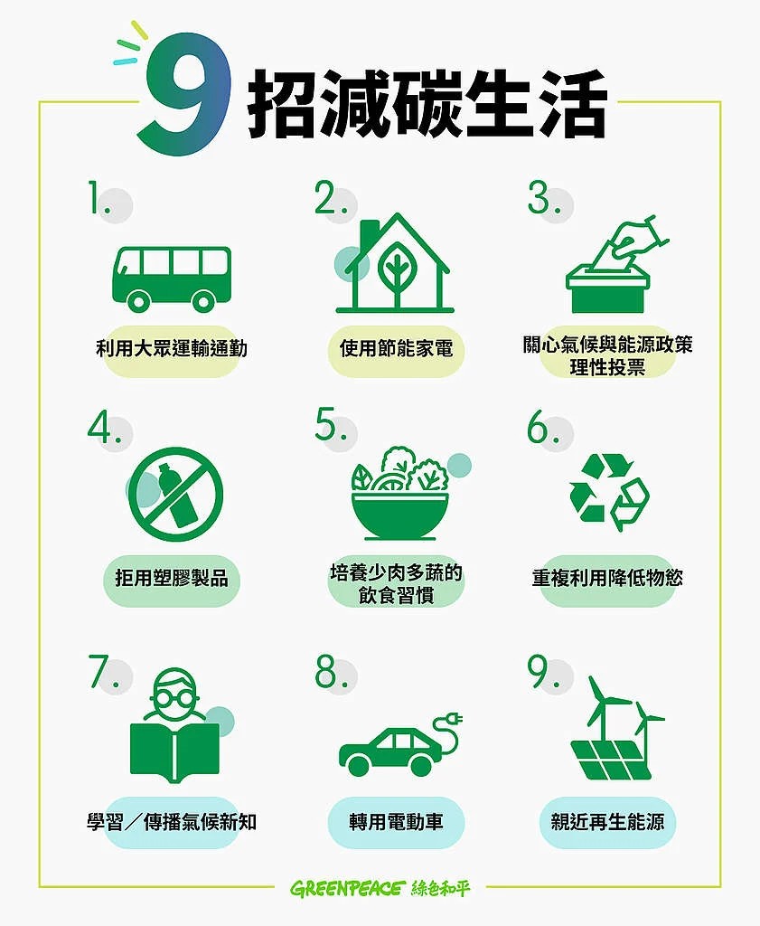 52a89008-9招減碳-841x1024 為配合節能減碳及綠色生活政策 本所宣導以下節能減碳作為: 1.利用大眾運輸就診2.使用節能家電3.關心氣候與能源政策及理性投票4.拒用塑膠製品5.培養少肉多蔬的飲食習慣6.重複利用降低物慾7.學習傳播氣候新知8.轉用電動車9.親近再生能源